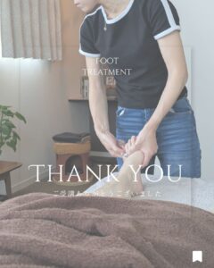当サロンのフットトリートメントは「アロマトリートメント」と「リフレクソロジー」をベースとしており、心地の良い圧で足裏からふくらはぎまでをアロマオイルで流していきます。刺激の強い足つぼが苦手な方でも受けて頂けますし、リラックス感とスッキリ感どちらも体感できる手技となっております。